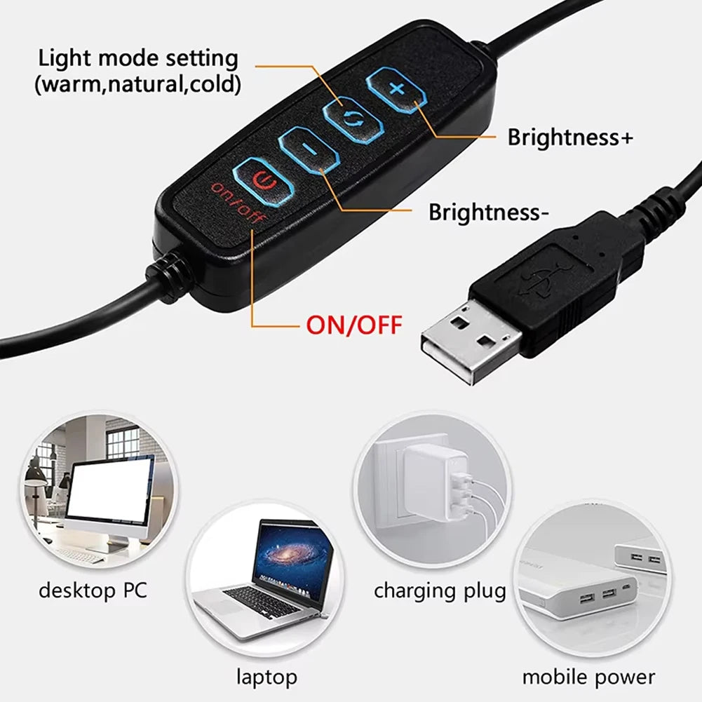 【Dimmable LED Ring Light】Features a USB plug for power and adjustable brightness levels, allowing you to customize the lighting and fill light as needed.